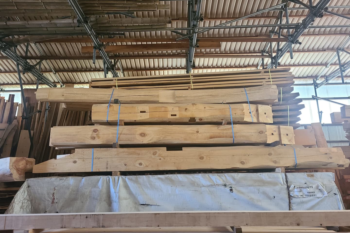 白鳳社寺では、少しでも木の癖を見抜き適材適所を実現するために、原木調達を行っています。