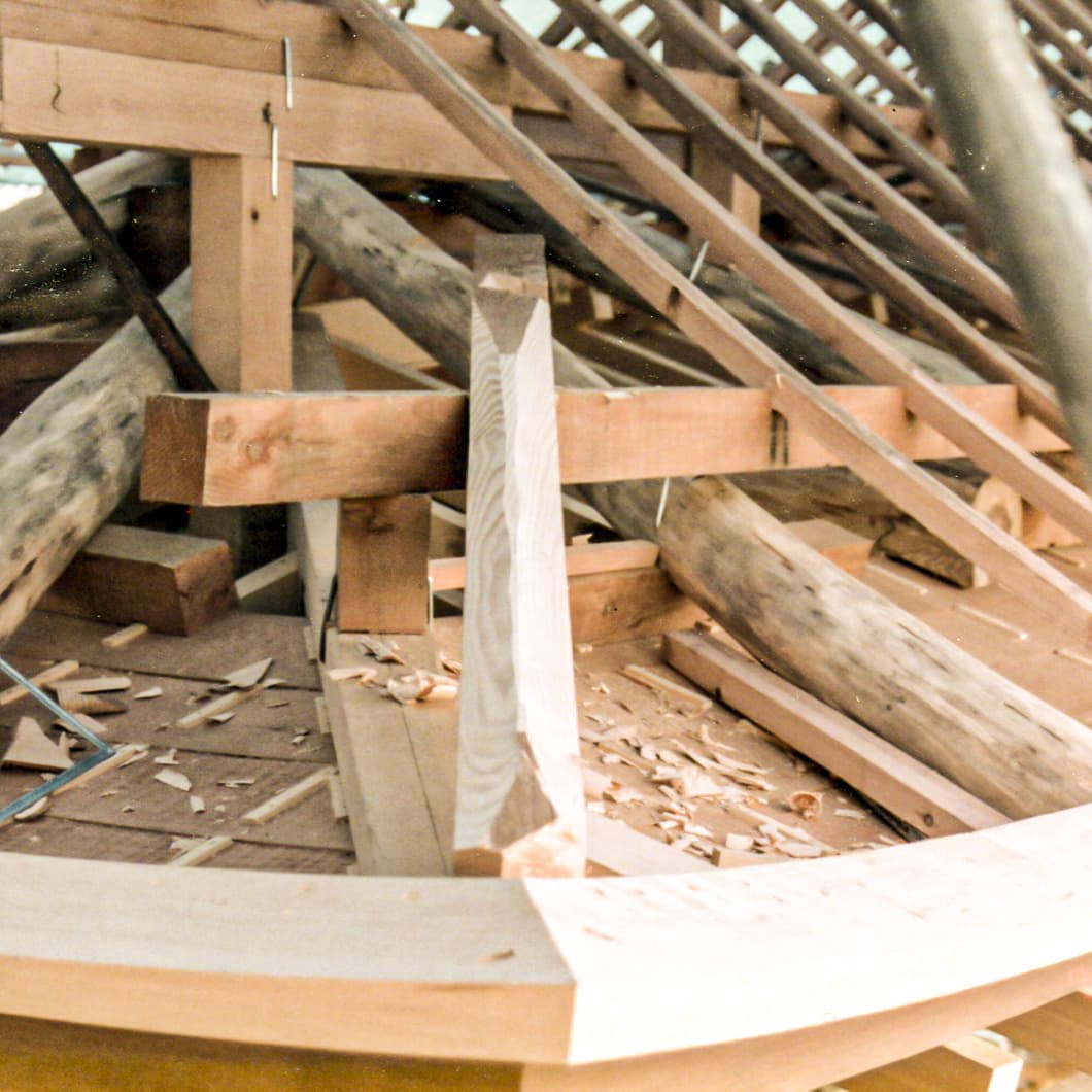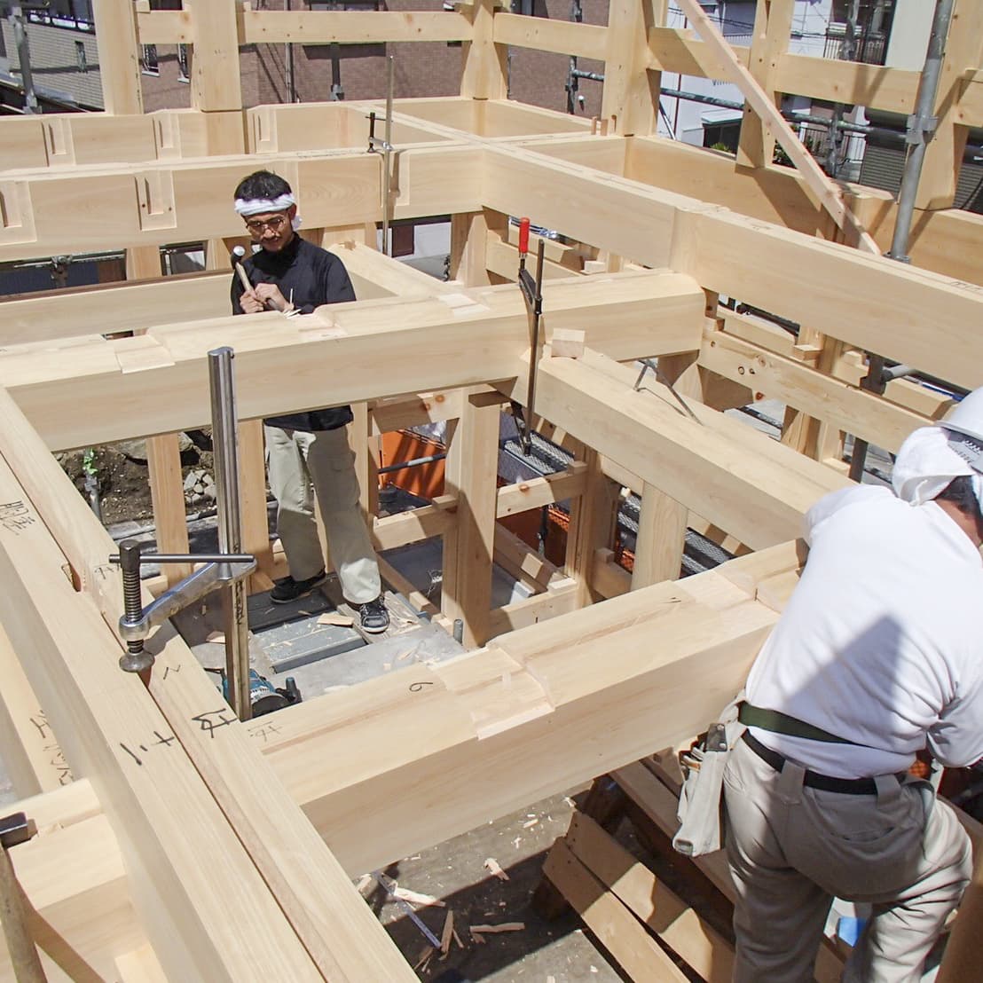 長い期間、風雨に耐える建築を作るために木が持っている癖(個性)を見抜き、適材適所に配置し、組み上げていくことが必要不可欠です。木の癖は、伐採、製材と人の手が入り加工が進むほど、見抜きづらくなります。