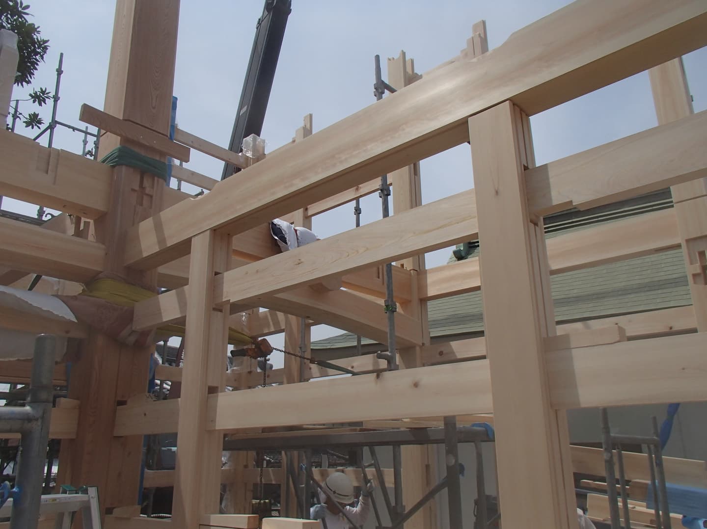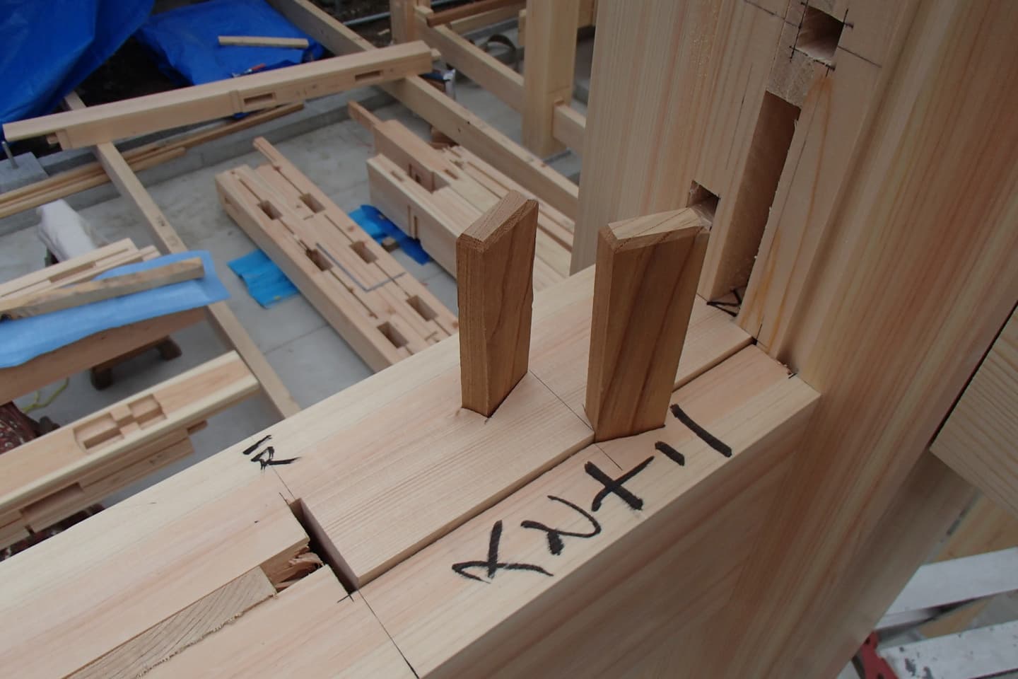 白鳳社寺では、建物を建てるときに仕口継手の位置が部材ごとに重ならないように組上げて行きます。
